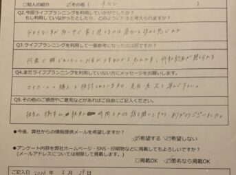 専門家の視点で分かりやすく丁寧に解説してもらえるので、プランニングを受けて良かったです。