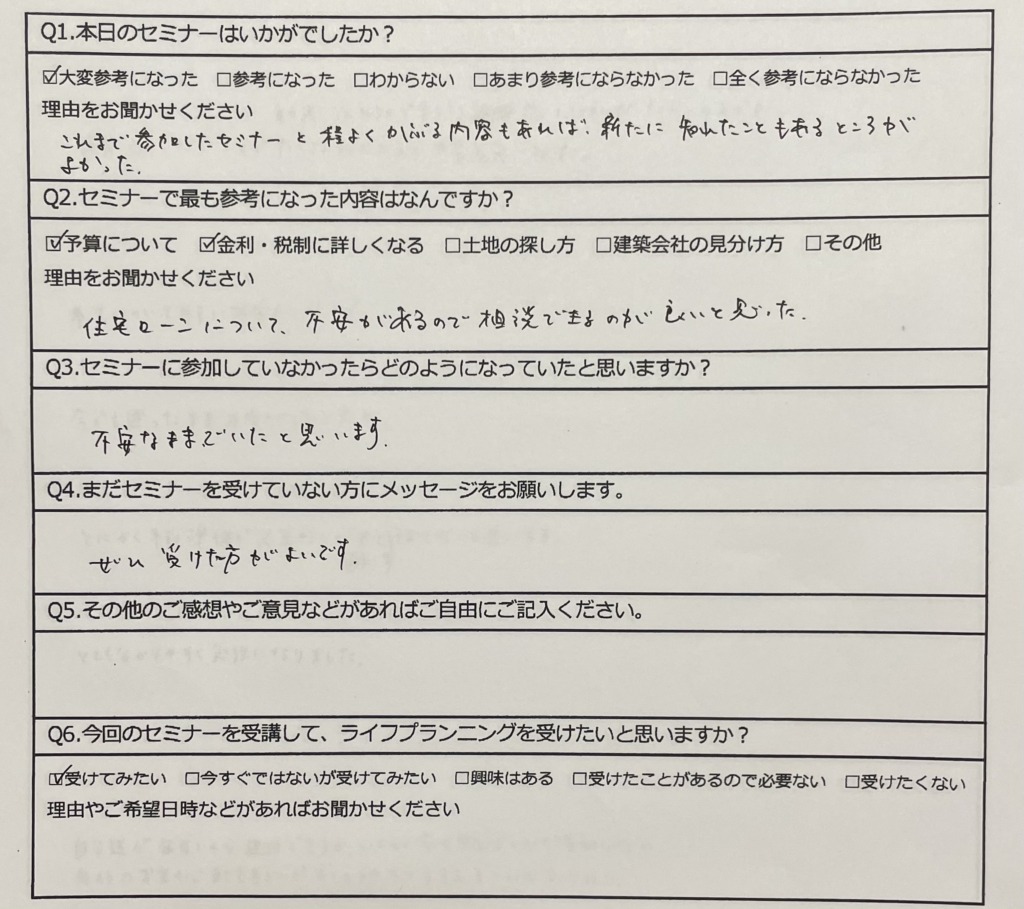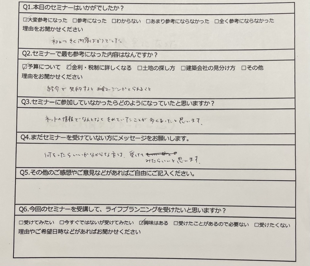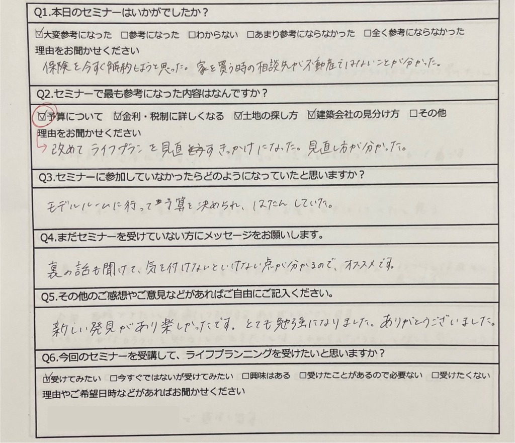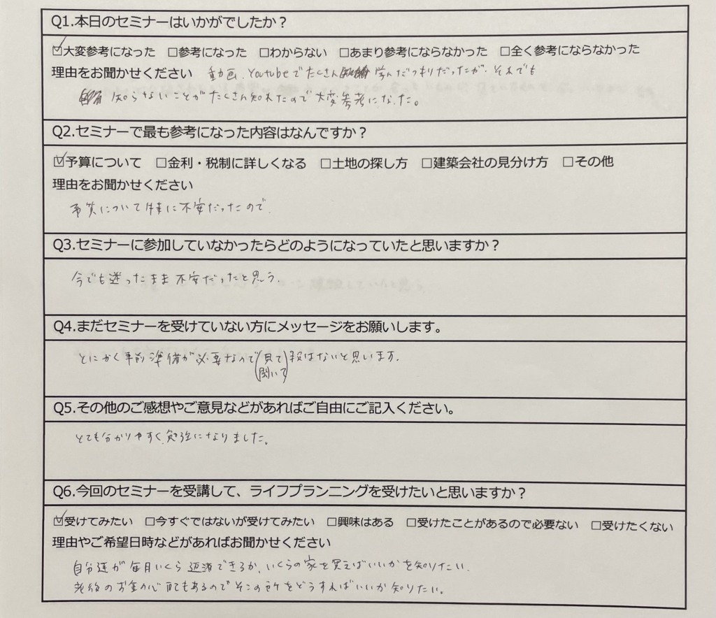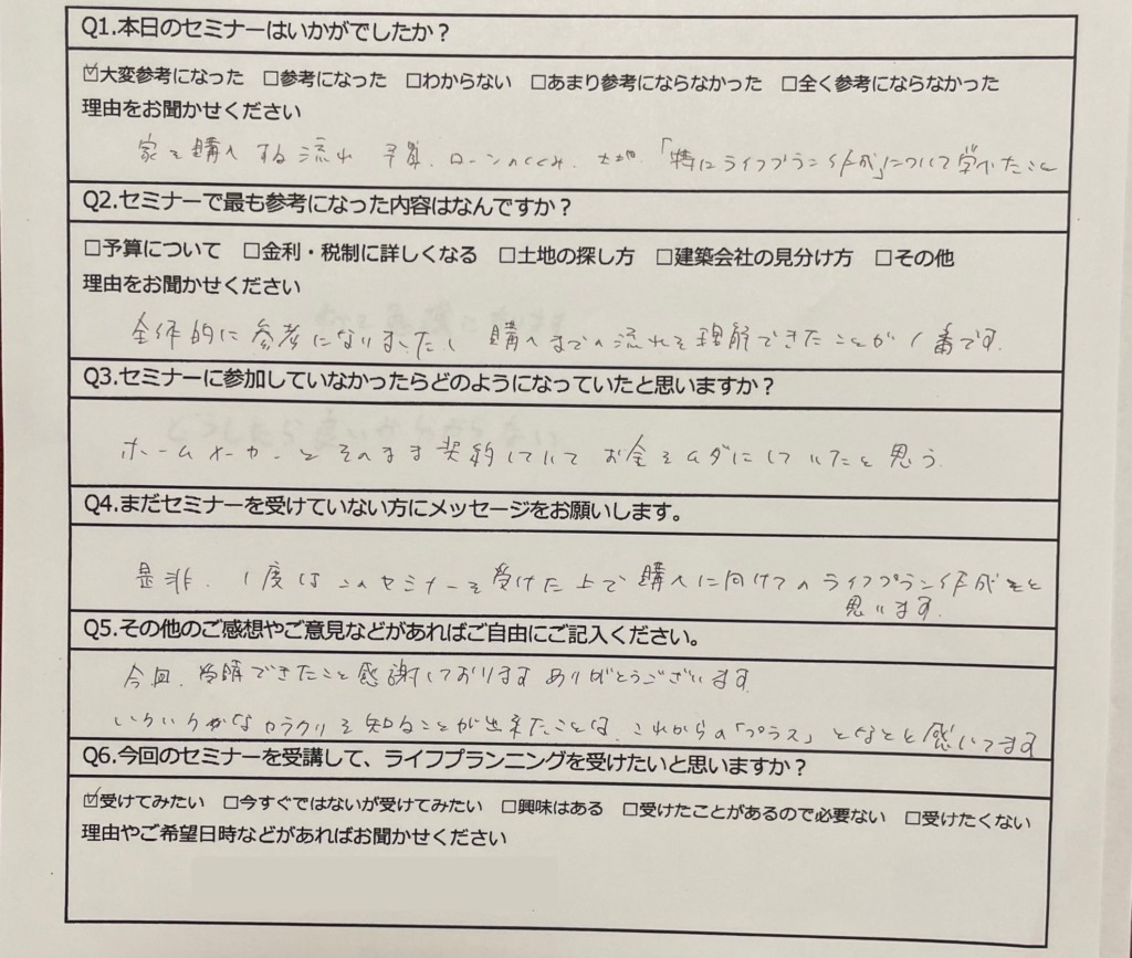 是非、1度はこのセミナーを受けた上で購入に向けてのライフプラン作成をと思います。