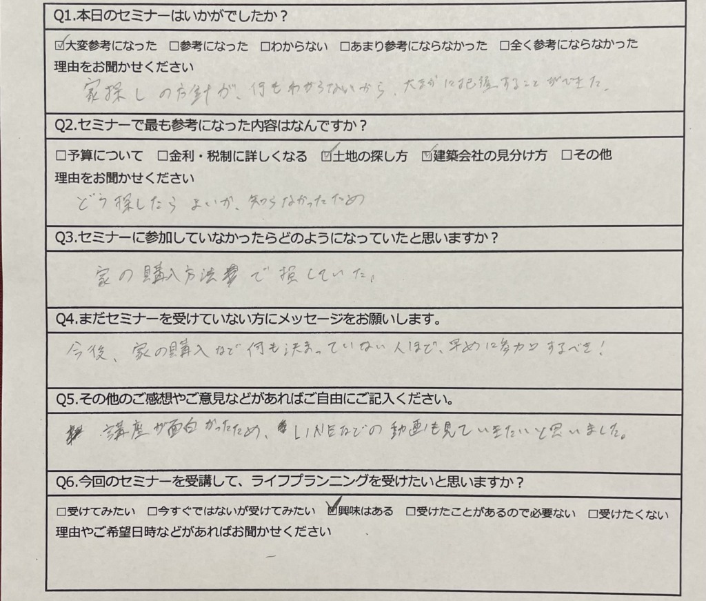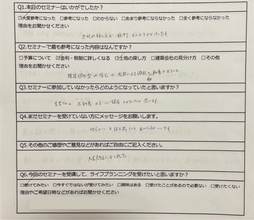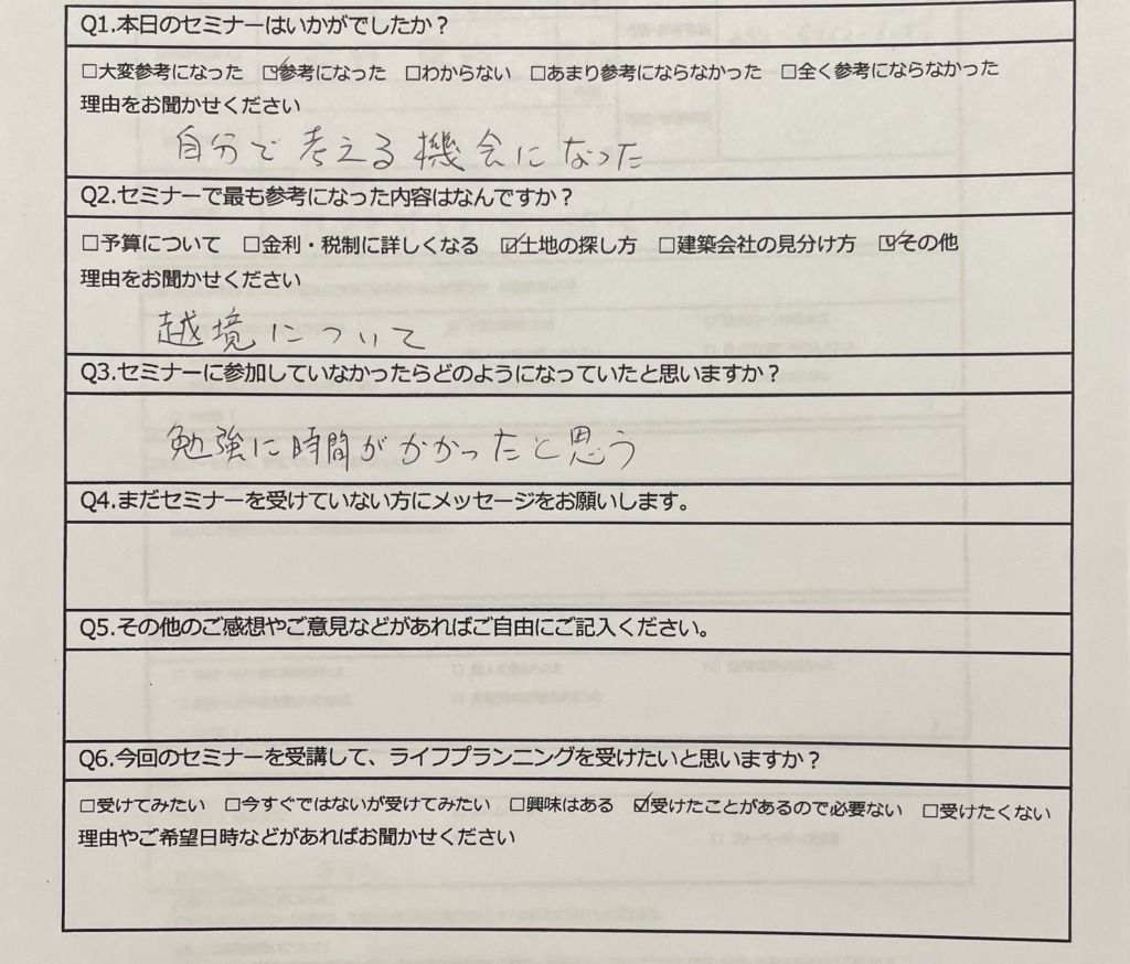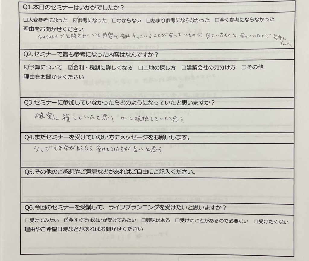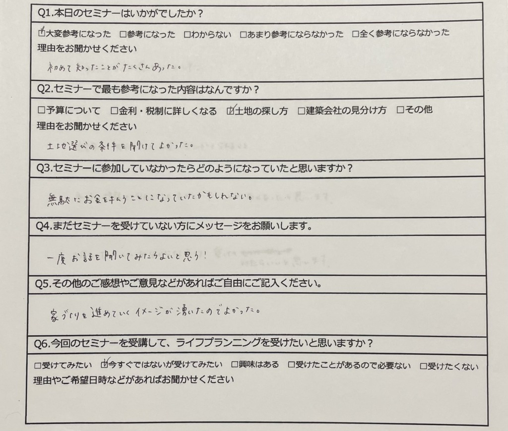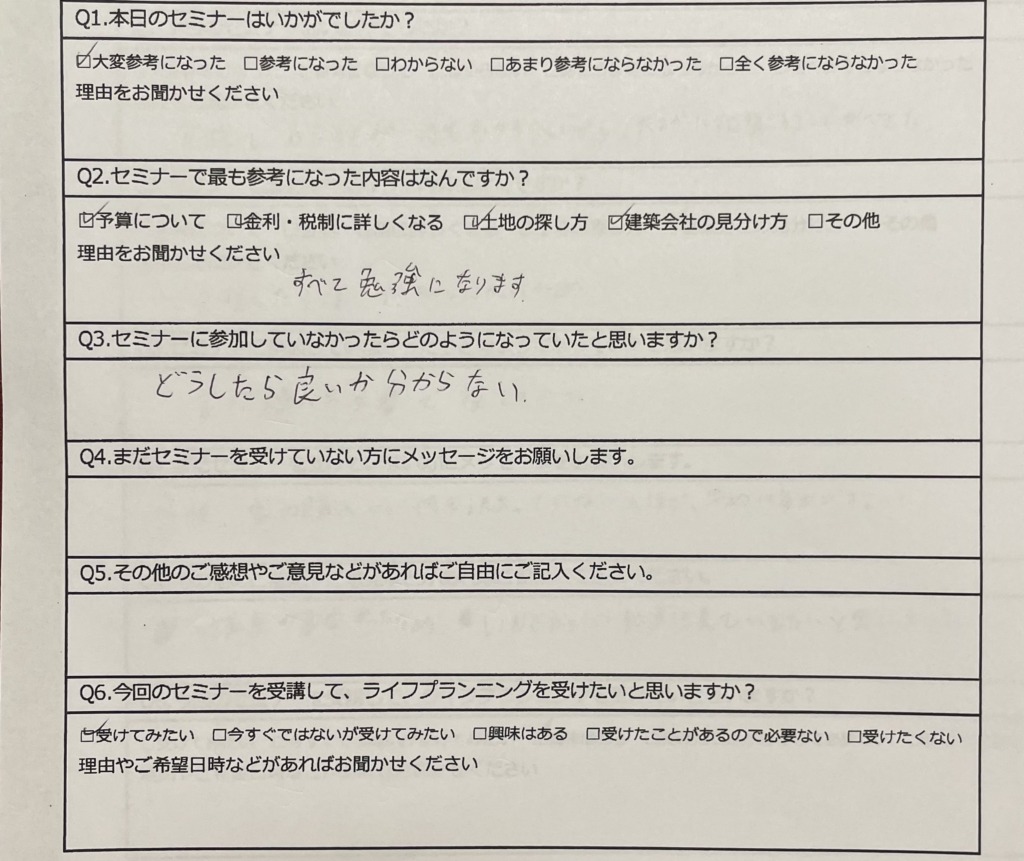 是非、1度はこのセミナーを受けた上で購入に向けてのライフプラン作成をと思います。