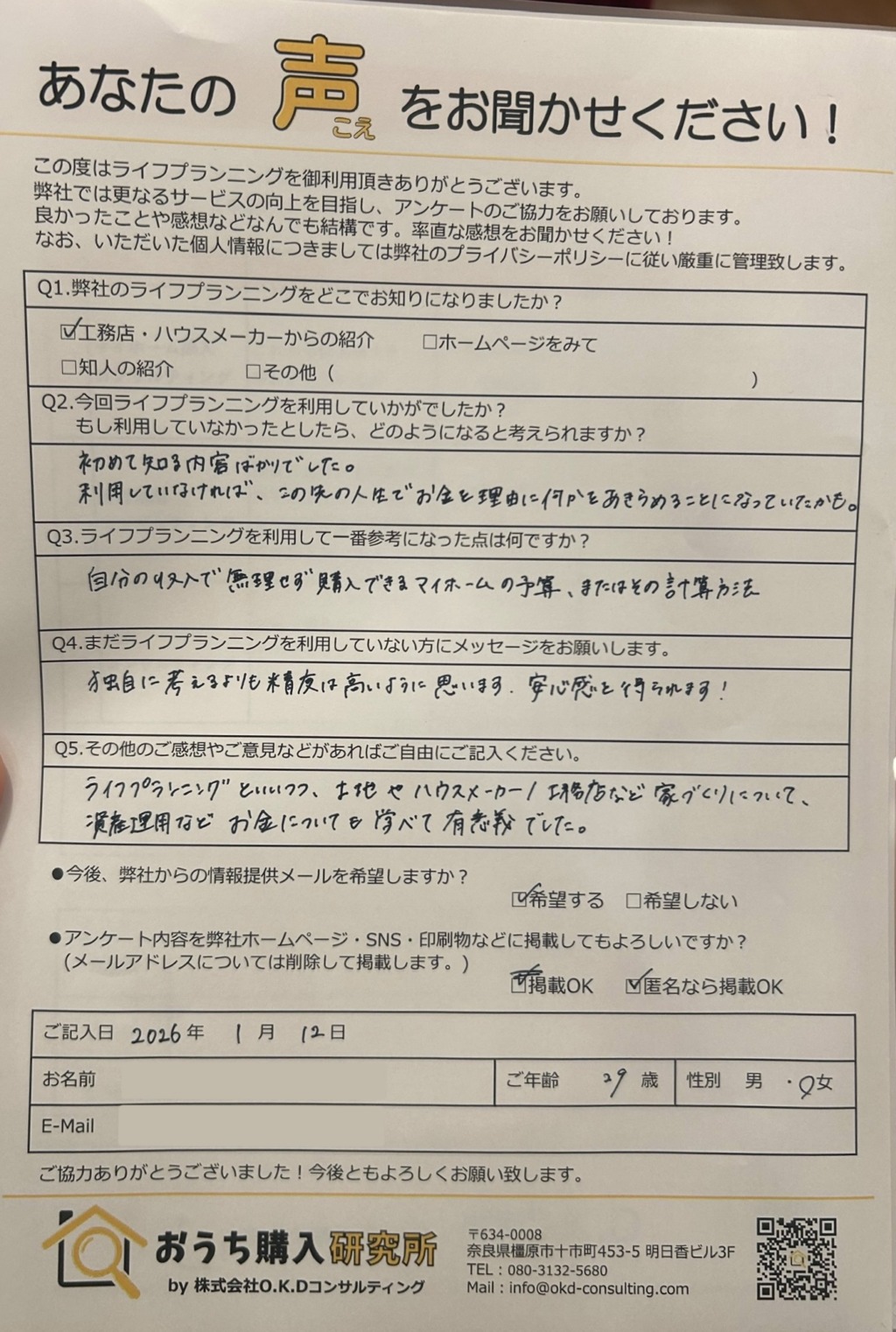 ライフプランニングといいつつ、土地やハウスメーカー/工務店など家づくりについて、資産運用などお金についても学べて有意義でした。