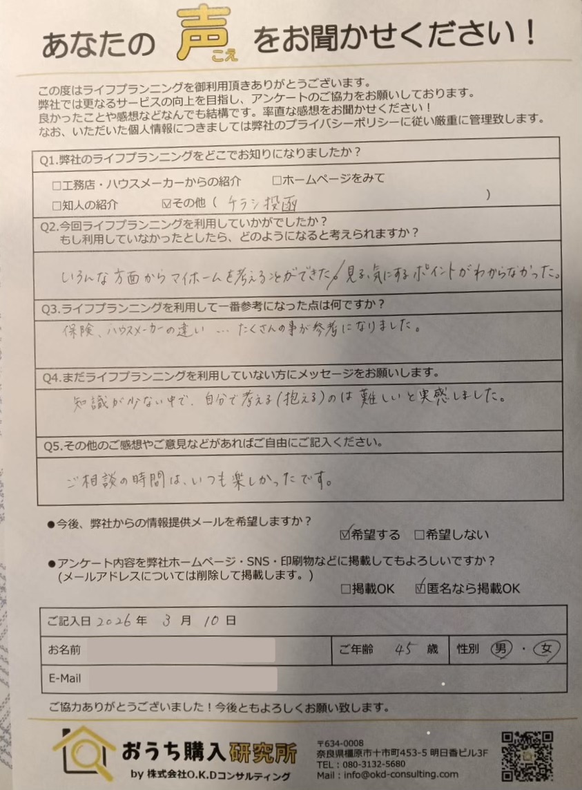 ご相談の時間は、いつも楽しかったです。