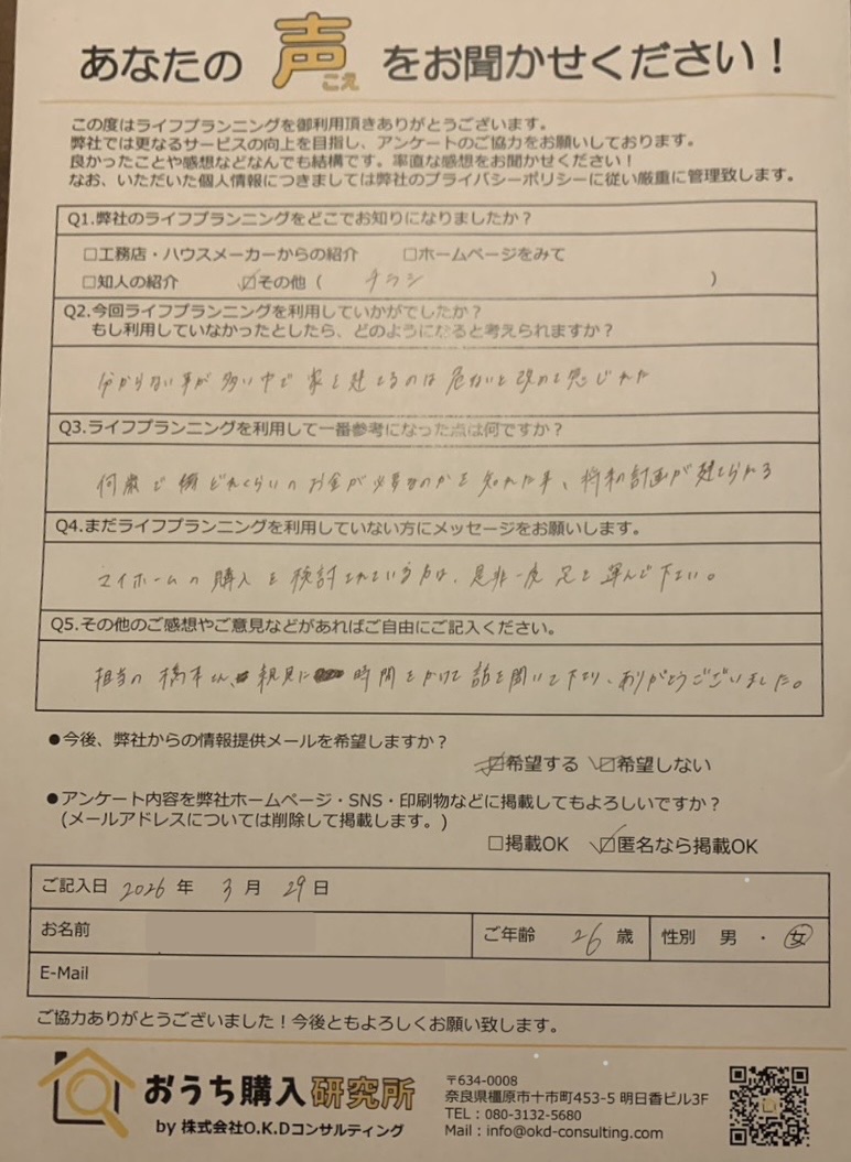 担当の橋本さん、親身に時間をかけて話を聞いて下さり、ありがとうございました。