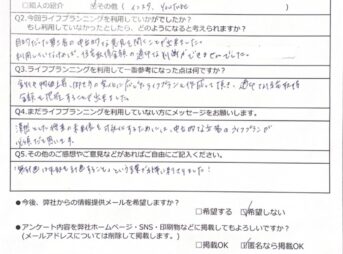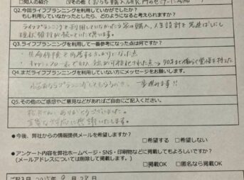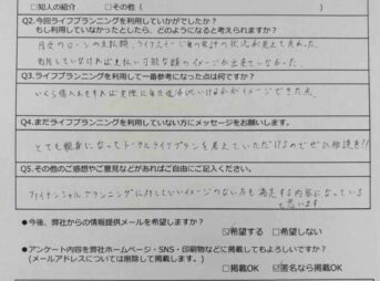ライフプランニングを利用していなかったら家の購入、人生設計を先延ばしにし、現状維持が続いていたと思います。